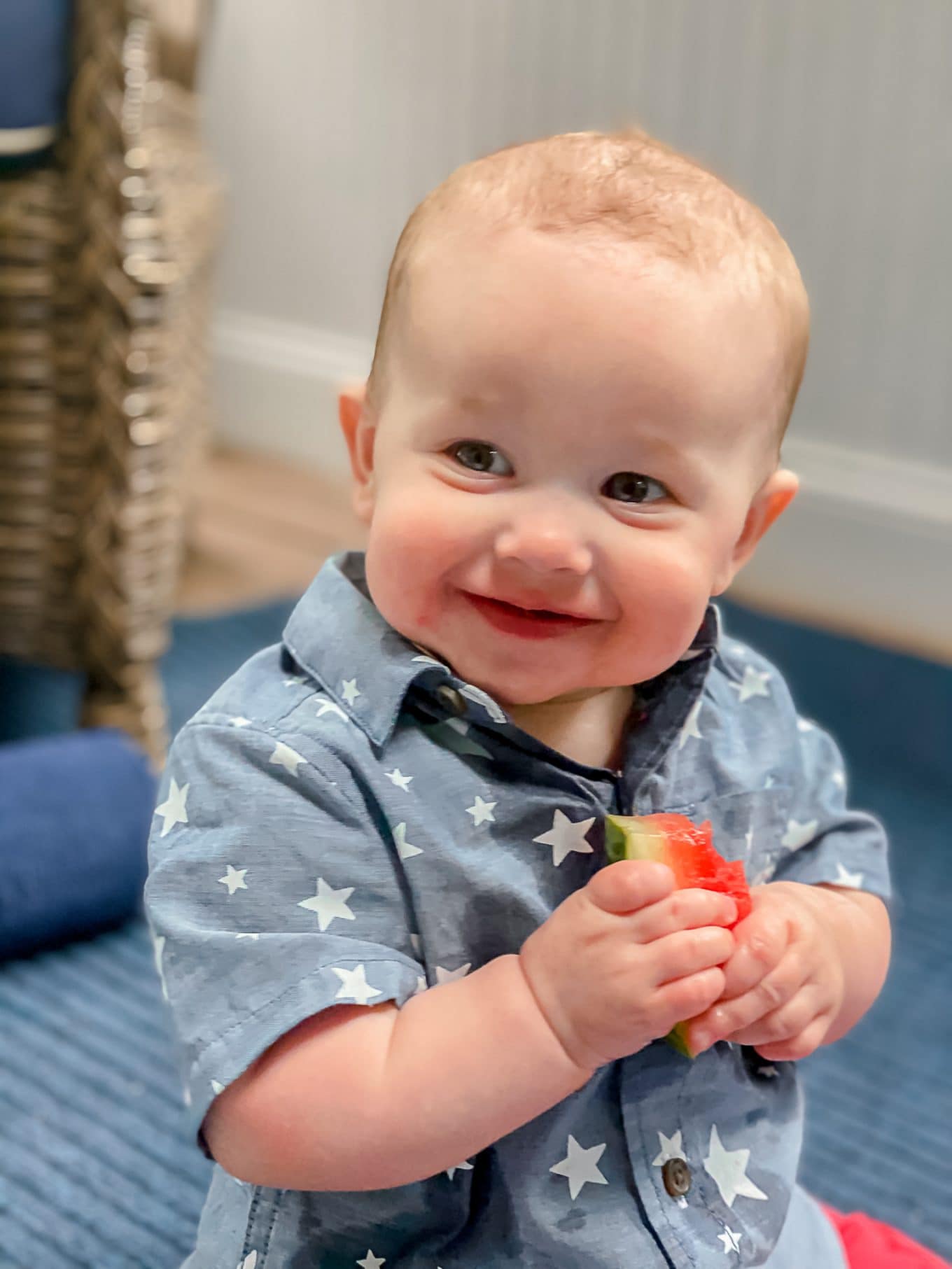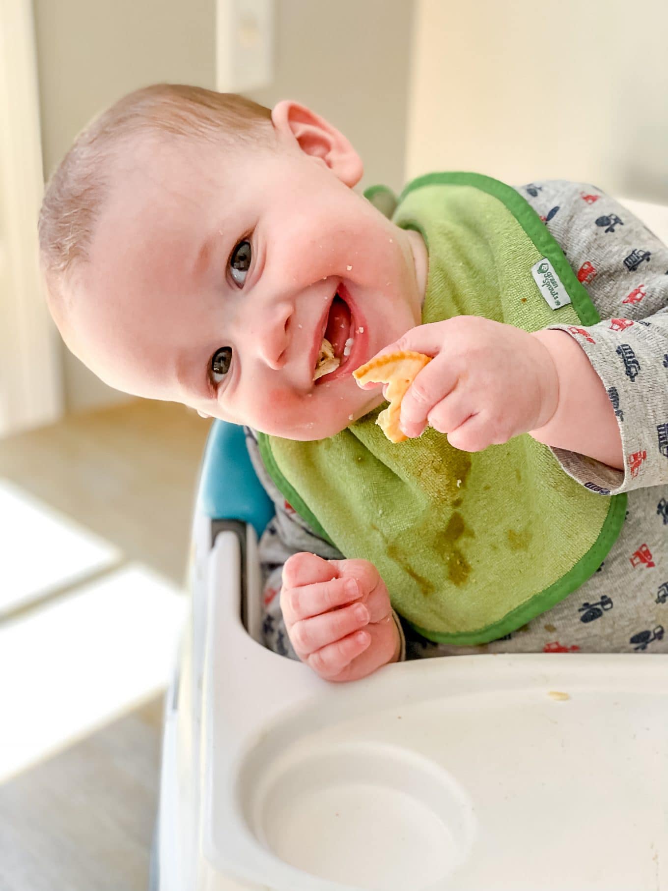 En este punto, no se me ocurre ningún alimento que le hayamos dado que no le haya gustado. Le encantan los aguacates y come la mitad de uno casi todos los días en el almuerzo. También le encanta el brócoli, las batatas, los huevos revueltos, el pollo desmenuzado y cualquier cosa que James deje atrás.