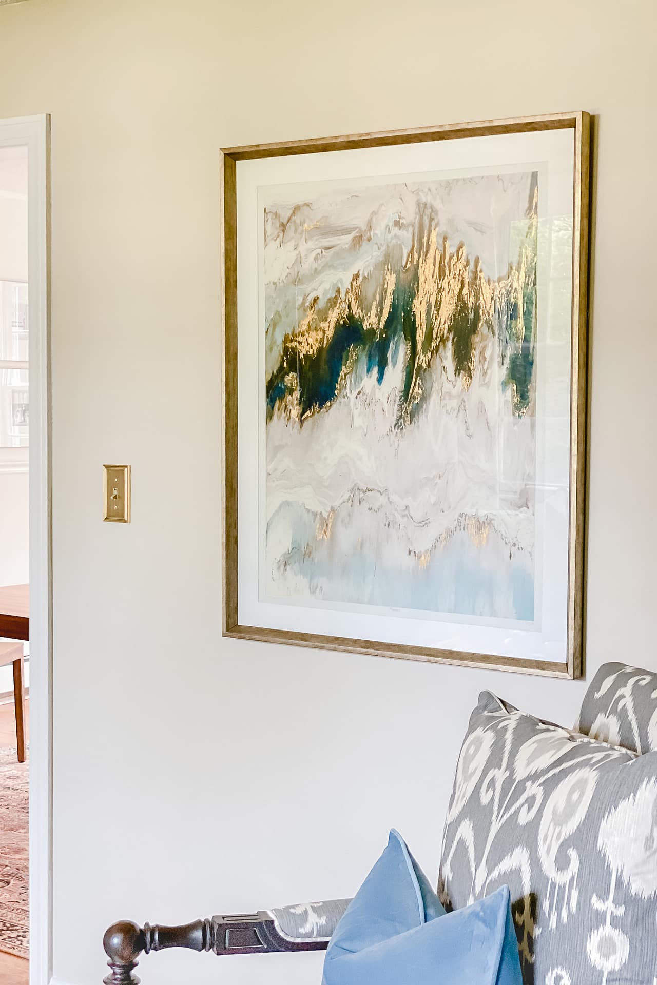 Mesa de centro de latón y vidrio: encontré esto usado en una venta de garaje en Facebook. Esta es la misma tabla de Wayfair..